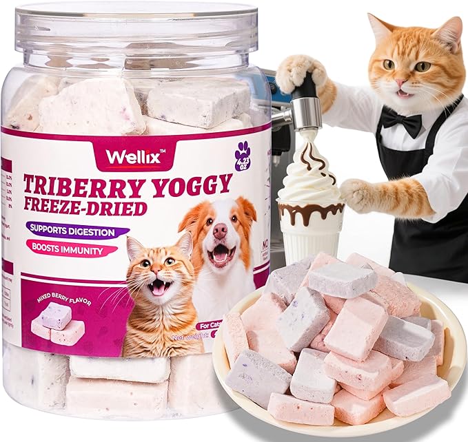 - Perfect Yogurt Treat for Cats & Dogs - Wellix advanced freeze-drying process locks in nutrients, preserves probiotics for cats, probiotics for dogs. These treats are ideal to serve as crunchy cat and dog treats while supporting cat & dog dental care