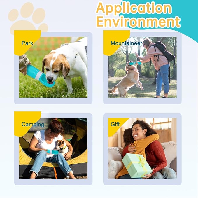 - Best Travel Companion: A portable dog water bottle is a must-have item for pet owners on the go! The unique design is both user-friendly and dog-friendly. It's perfect for long-time drives, road trips, hikes, walks, and outdoor activities.
