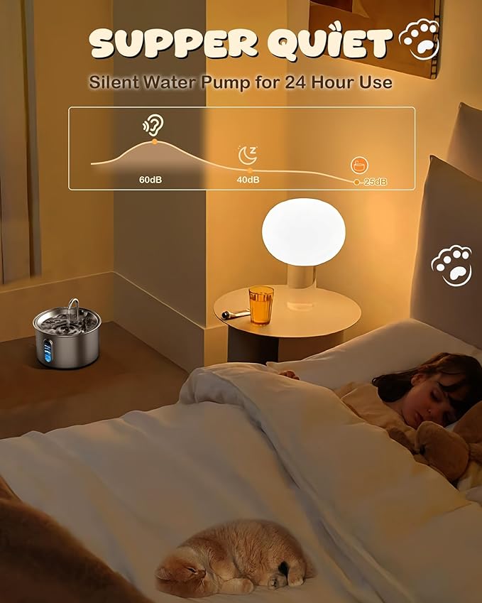 - Ultra Quiet Smart Pump - Features a low-noise ≤25dB pump that operates quietly, perfect for bedrooms and living areas without disturbing the family's daily life. The energy-efficient 0.8W pump ensures minimal power consumption while providing reliable performance