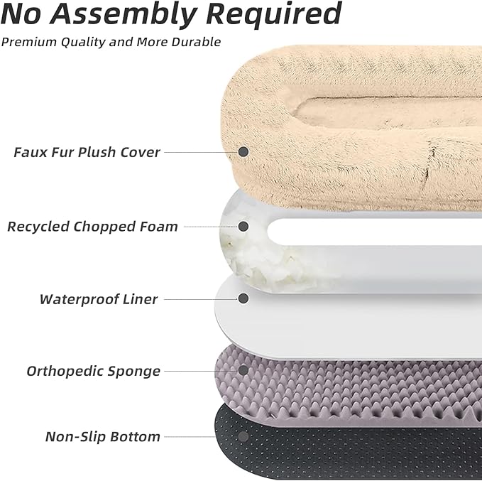 Human Dog Bed - Extra Large Dog Bed for Humans,71''x45''x12'' 、 Giant Cuddle Pillow Pet Lounger, Super Soft Plush Orthopedic Floor Cushion for Adults, Kids, Pets - Washable Cover, Beige.