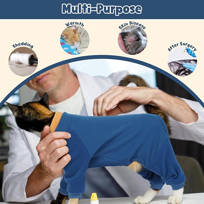 - CAT SURGERY SUIT FOR ABDOMINAL WOUNDS: The surgical cat recovery suit full bodysuit is designed to effectively protect your pet's wounds, spots, incisions, bandages, hot spots, infections, and skin herpes; This soft cat recovery suit for cats or small dogs which can better fit the pet's body reduce contact with potential allergens