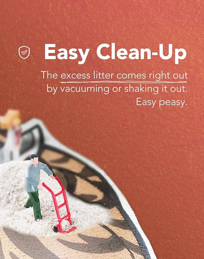 - ✨ Easy Clean-Up: You can clean Lukamoo’s litter mat by vacuuming or shaking it. The excess litter comes right out. Easy peasy.