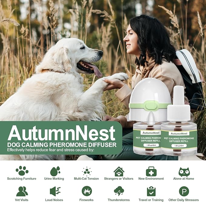 - 【Soft Glow Design for Reassurance at Night】 AutumnNest diffuser emits a gentle soft glow when plugged in, providing subtle comfort for dogs sensitive to darkness, while allowing owners to easily check operation status.