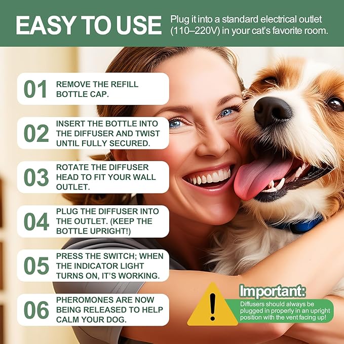 - 【Complete 3 Refill + Plug Kit for Long-Lasting Effect】 Includes one diffuser and three refill bottles (48ml each), giving up to 90 days of continuous behavioral support to help your dog stay calm and comfortable.