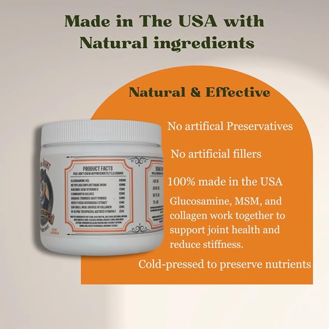 - Made with glucosamine, turmeric, & MSM — daily support for strong, flexible joints