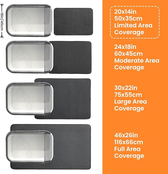 - Double-Layer Honeycomb Structure: The top layer features holes that capture all kinds of litter, allowing it to fall through to the waterproof bottom layer for easy cleanup. Simply pick up the kitty litter mat, pour the trapped litter back into the box, and reuse it—mess-free and effortless. This clever design minimizes litter waste and streamlines your daily cleaning routine.
