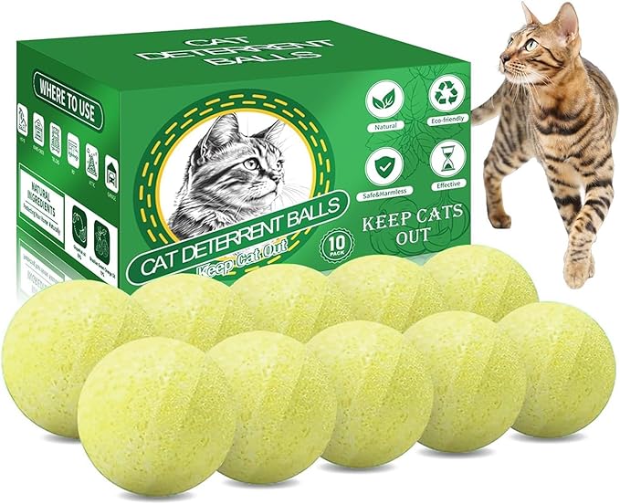 10Pack Cat Repellent Outdoor & Indoor: Natural Cat Deterrent Essential Oils Ball-Natural Extract Essential Oil, Anti Cat Scratch for Furniture, Keep Cats Off Yard Garden Lawn Plants Trash Can (10Pcs)