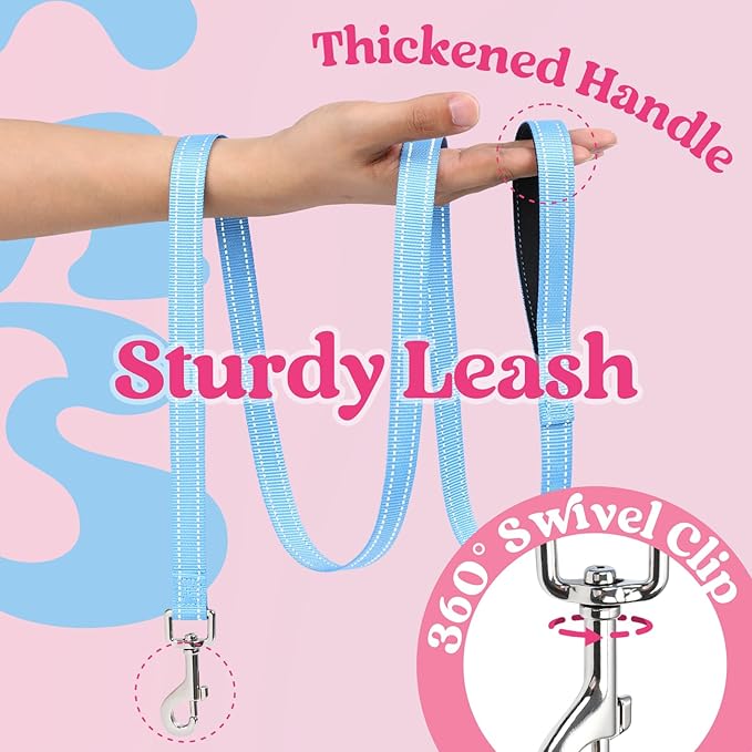 - Harness & Leash Set: Trendy color-combo design, perfect for young, style-conscious pet owners. Our harness set includes a matching 5.1 ft leash in the same color for a coordinated look. It features a skin-friendly, cushioned handle for gentle grip
