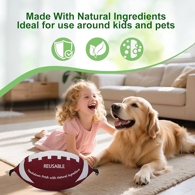 - Stylish & Easy to Use Anywhere – Made from natural ingredients with no added scent. It is ideal around kids, pets, and sensitive noses. The bold football-themed design adds a sporty touch, making it a fun and functional addition to any space. It also includes a built-in lanyard, so you can hang it easily in closets, cars, or other compact areas.