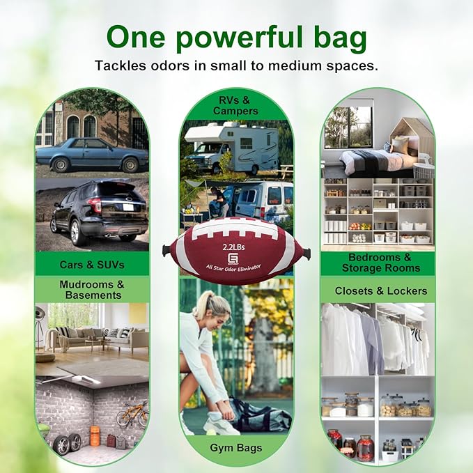- Freshens Up to 200 Sq Ft – Flexible for Any Space: One powerful bag is all you need to cover small to medium areas like cars, SUVs, RVs, gym bags, lockers, bedrooms, and closets. For larger spaces such as kitchens or living rooms, we recommend using two or more bags for full coverage and maximum freshness. Perfect closet deodorizer, odor absorber for strong odor, baking soda odor absorber, car odor remover, charcoal bags odor absorber.