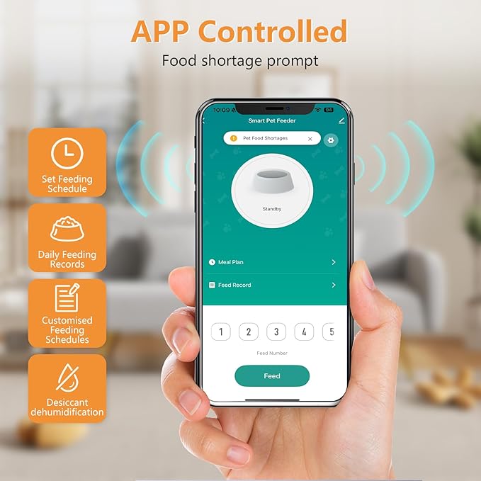 - Convenient APP Control: WiFi automatic cat feeder can plan and remotely feed your pet anytime and anywhere through the application on your smartphone. You can set the number of meals and the number of copies per meal according to your pet's eating habits.