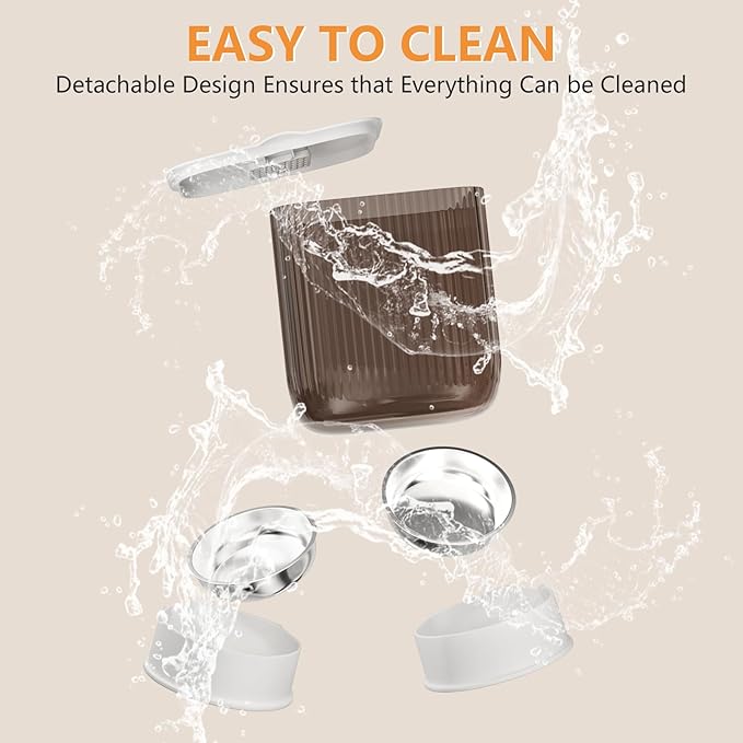 - Easy to Clean and Maintain: Our automatic dog feeder is designed with your convenience in mind. It features detachable parts-water tank cover, water tank, water tank base and food bowl-for thorough cleaning while keeping fresh