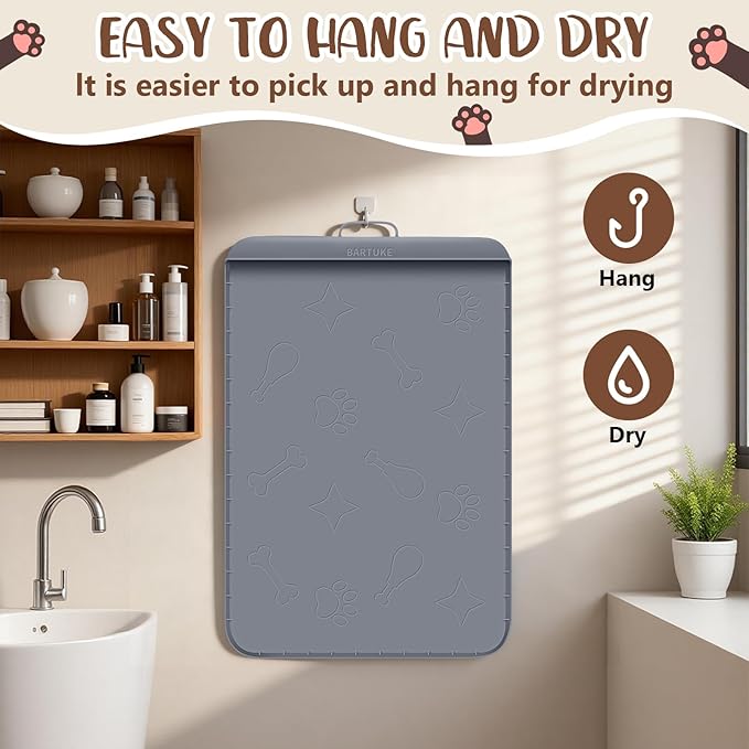 - Easy to Clean & Storage: You just need to clean the dog food mat by rinsing and hang up to dry, then it can be put into use next time. And this soft silicone mat can be rolled up or folded for easy portability and space saving.