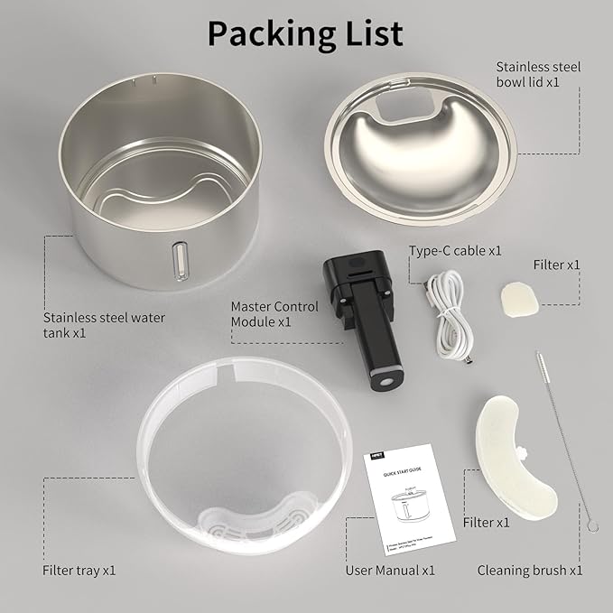 - 【5 Layers Filtration】: Our filters are made of sponge, activated carbon, medical stone, ion exchange resin, and non-woven fabric. This ensures your cat drinking freash, clean water for a week, we recommend using softened or filtered water. Also please replace the filters every 2-4 weeks to keep good filtration.