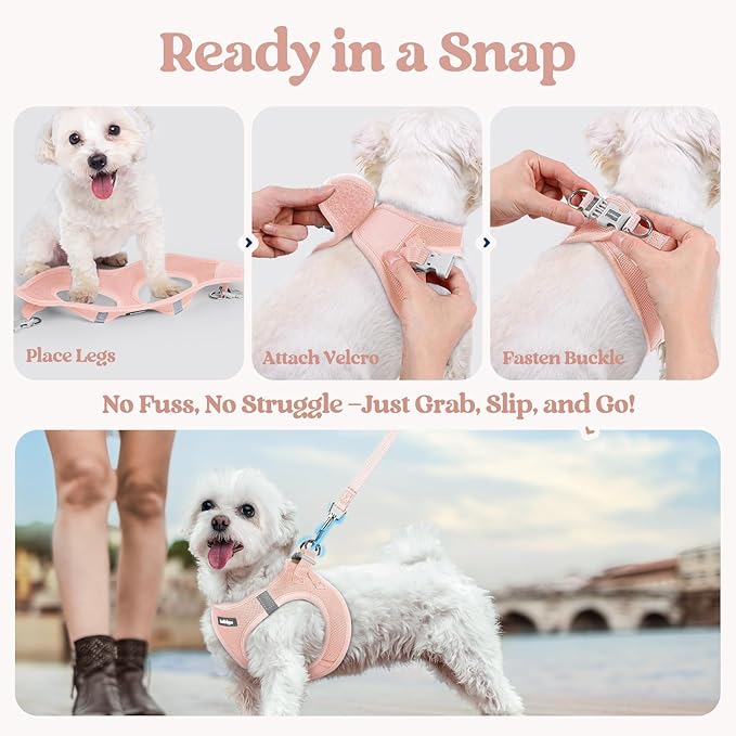 - Breathable and Weightless: The Step-in Harness for small dog offers lightweight (0.2lbs) and soft edges, airy mesh for maximum airflow, ensuring your pet stays comfy and cool during walks or outdoor adventures