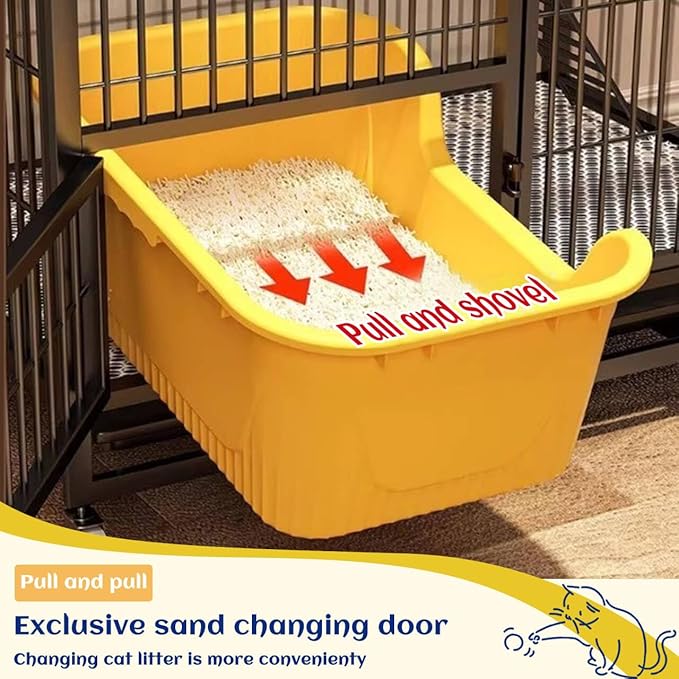 - Easier to move & clean pet crate: The cat cage is specially equippeds with a small door for changing cat litters, which can accommodates a cat litters box of L19*W13*H9 in (need to bring your own), which can be easily pulleds out for cleaning, saving time and efforts; 4 360° universal wheels (two of which have brakess) are easy to move, fixed firmlys, and more convenient to clean or adjust the positions! The bottom is designed with a pull-out plastic tray for your conveniences to clean