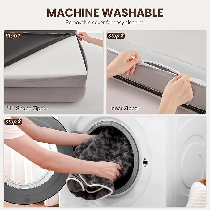 - Removable and Washable Cover: Our washable dog bed designed with “L” premium zipper which is super easy to take off or put the foam in. Fully machine washable cover for convenient cleaning. Maintains shape and quality through multiple washes.