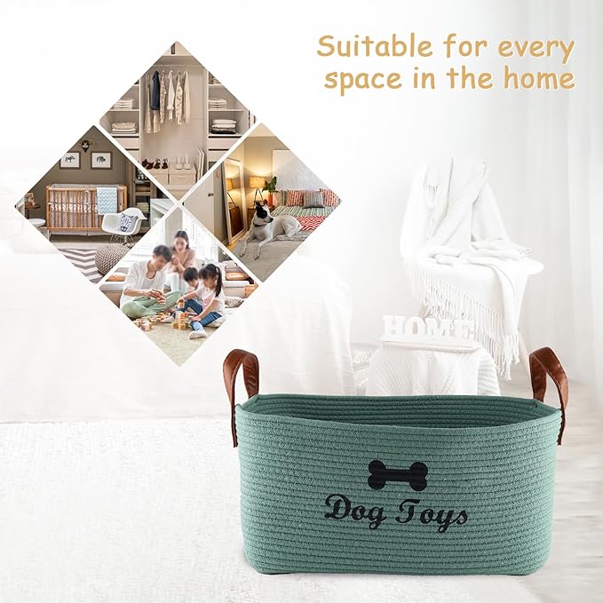 Large Cotton Rope Dog Toy Basket Storage,16.5"x10.6"x 7.5" Dog Toy bin,Puppy toy basket,-Perfect for organizing pet toys,blankets,leashes,pee- mats and diapers-Green