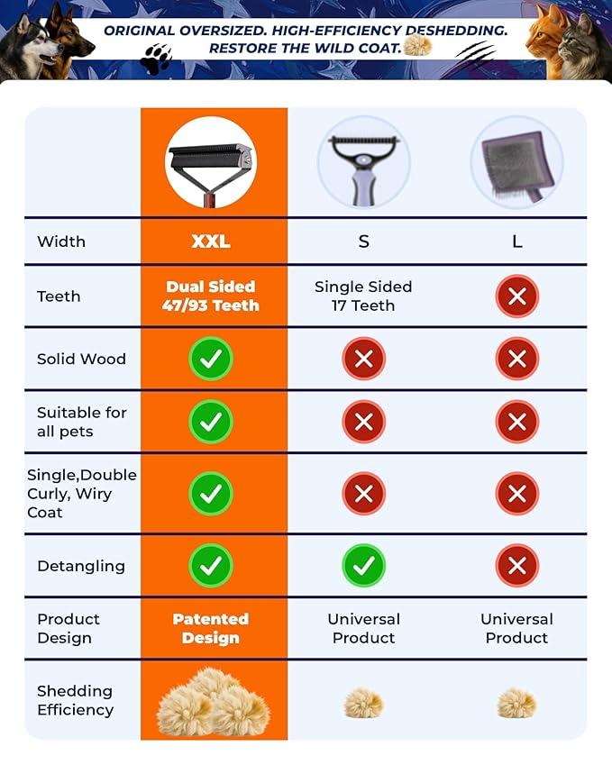 - ⏰【Quick and Efficient Grooming】Save time with our versatile grooming tool. The dual-sided design features a wide-tooth side for tackling tough mats and a fine-tooth side for deshedding and thinning, making grooming faster and easier.