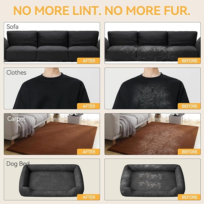 - Works on Any Fabric Surface: Compatible with clothes, beds, sofas, carpets, and car seats—these pet hair removal gloves are effective on nearly most fabric surface. Forget tedious rolling; just slide your hand over the area to see the hair lift away easily. An all-in-one tool for every hair removal need around your home
