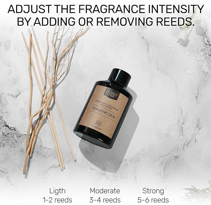 - Easy to Use & Customizable: Insert and rotate reeds until wet for quick activation. Flip reeds once a month to refresh scent. Adjust intensity by adding or removing reeds—more reeds for stronger aroma