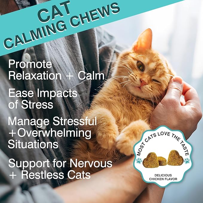 - Delicious Chicken Flavor, Easy to Feed: Cats love the tasty chicken flavor of our calming cat treats, making feeding a breeze. No need to force-feed—simply add these calm treats for cats to your cat’s daily diet. Whether for cat calming treats for travel or calming cat treats for anxiety, these cat calming chews make the calming process enjoyable and stress-free