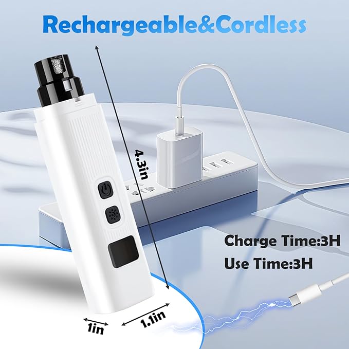 - 🔋 【Rechargeable & Long-Lasting】: Say goodbye to messy cords! Enjoy the convenience of cordless grooming with our portable and compact dog nail trimmers; while also providing a large capacity battery that rechargeable via USB in just 3 hours for up to 5 hours of use, making it easy to groom your pet anytime and anywhere. It's also a cool gifts for dog lovers.