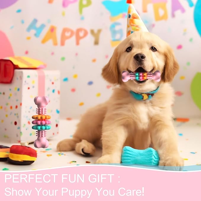 Puppy Teething Toy, Indestructible Dog Chew Toys for Aggressive Chewers, Interactive Bone Dog Toy for Small & Medium Breeds, Tough Puppy Toys to Keep Them Busy and Clean Teeth (Pink)