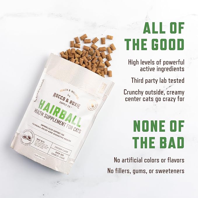 - Natural Ingredients: Rocco & Roxie hairball support cats is made with wholesome ingredients; promoting digestive health and reducing hairball formation naturally