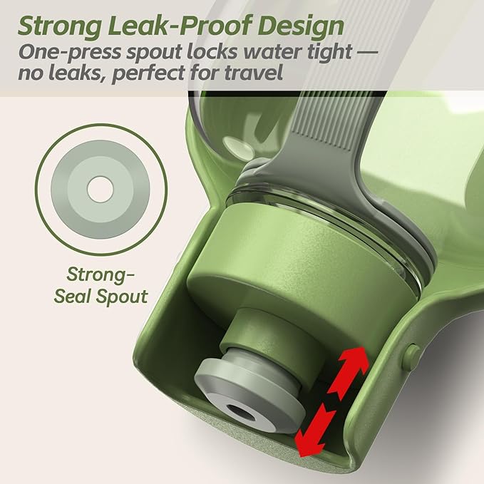 - 【 Portable Strap & Leak-Proof Design】 – Comes with a durable elastic strap that easily attaches to backpacks, leashes or wrists. One-press sealing spout locks water tightly, preventing leaks even during bumpy travel and keeping your bag dry.