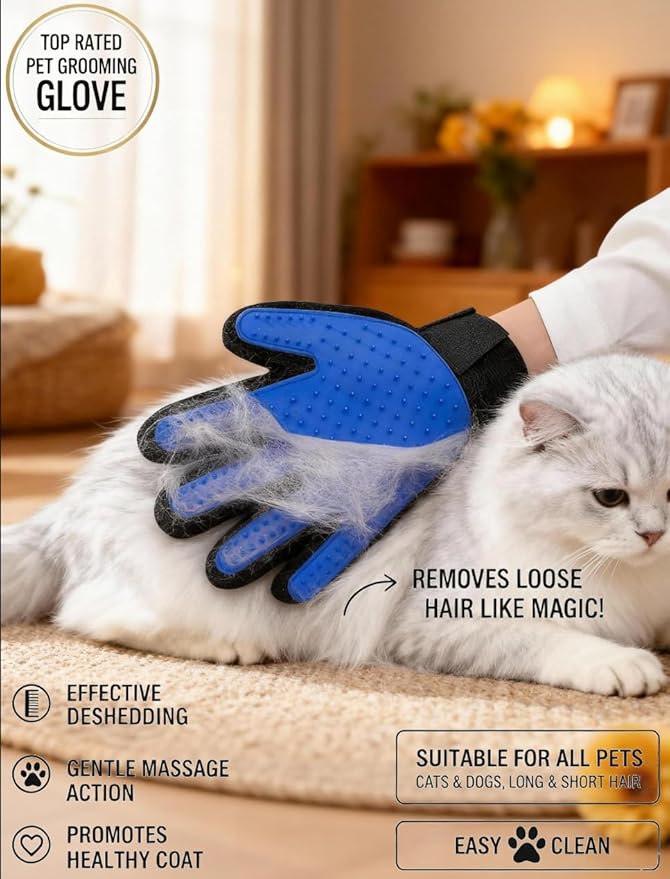 - ๐ถใ Versatile for All Pets & Hair Types ใ๐ฑ โ Whether you have a long-haired dog, a short-haired cat, a playful puppy, or even a horse, these cat & dog grooming gloves are designed for them all. The flexible silicone grooms efficiently, whether their coat is long, short, wet, or dry. This makes it a must-have item in your collection of cat grooming supplies and dog accessories.