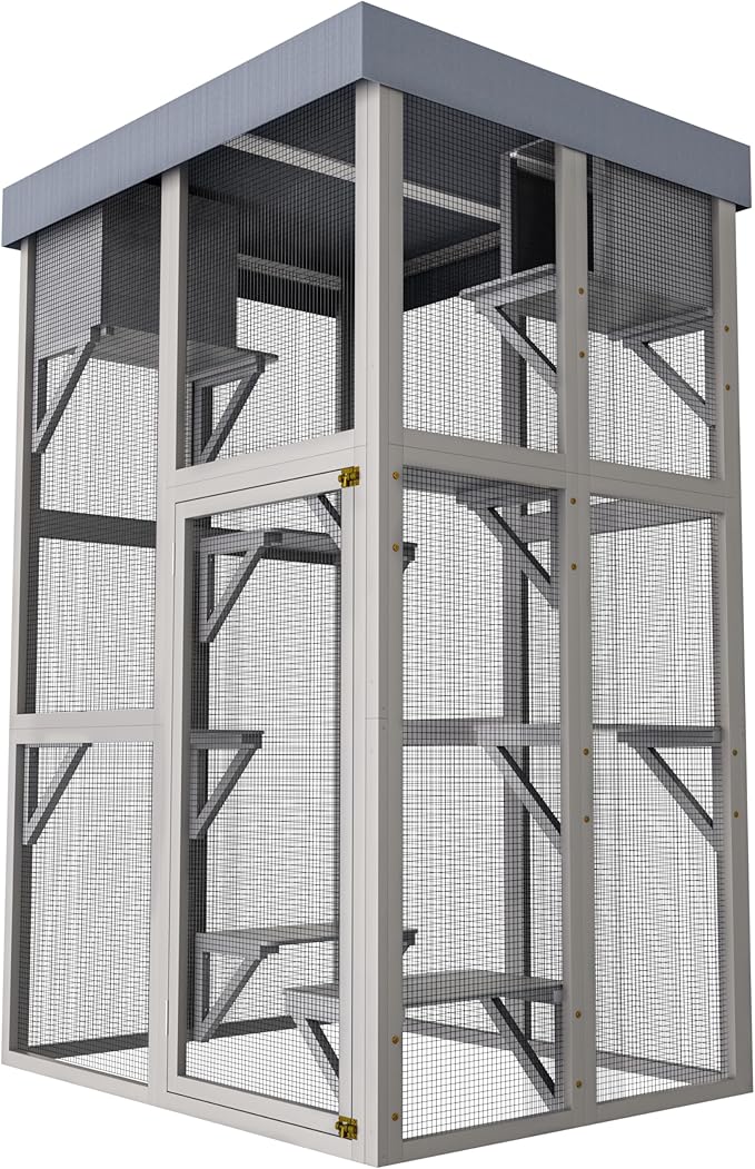 - Multi-functional Design for Cats: This cat enclosure offers an ideal space for your feline friends, featuring multiple platforms, climbing ramps, and cozy resting areas for endless fun, jumping, and relaxation.